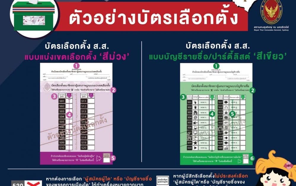ตัวอย่างบัตรเลือกตั้งปี 2566 6 พฤษภาคม 2566 โดย koyaoadmin / ข่าวประชาสัมพันธ์,ข่าวฝากประชาสัมพันธ์ FacebookFacebookXXLINELine
