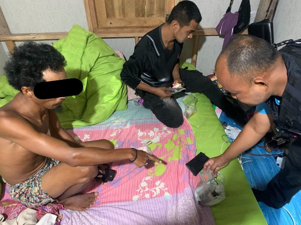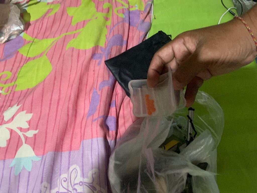 อยู่ในกล่องพลาสติก วางอยู่บริเวณข้างที่นอน นาย ณัฐพงศ์ ฯ ที่ นาย ณัฐพงศ์ ฯ นั่งอยู่ขณะถูกตรวจค้น