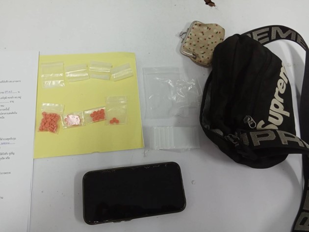 พร้อมด้วยของกลาง ดังนี้ 1.ยาเสพติดให้โทษประเภท 1 (เมทแอมเฟตามีนหรือยาบ้า) ลักษณะกลมแบนสีส้ม ประทับตรา WY ด้านหนึ่งอีกด้านหนึ่งเรียบ บรรจุในถุงพลาสติกใสชนิดกดปิดดึงเปิด จำนวน 4 ถุง ถุงที่ 1 จำนวน 50 เม็ด ถุงที่ 2 จำนวน10 เม็ด ถุงที่ 3 จำนวน 10 เม็ด ถุงที่ 4 จำนวน 3 เม็ด รวมทั้งหมด 73 เม็ด