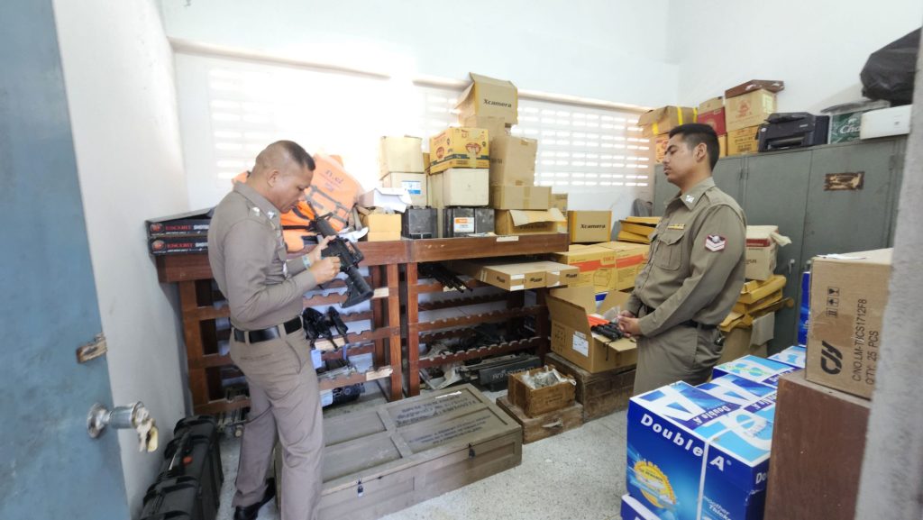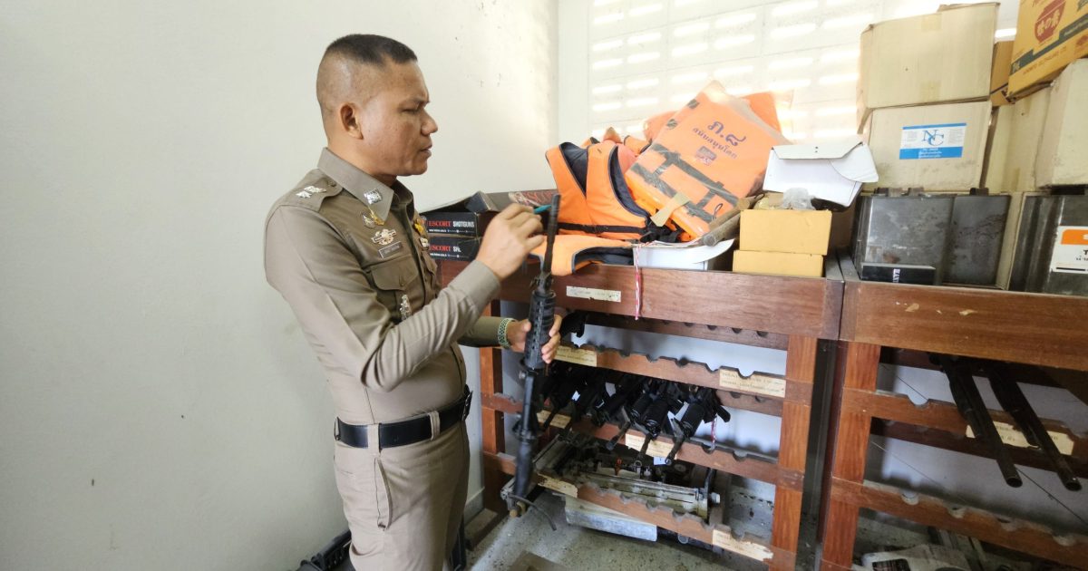 พ.ต.ท.ศักดา อ่อนรักษ์ สว.อก.สภ.เกาะยาว พร้อมเจ้าหน้าที่ที่เกี่ยวข้องตรวจสอบยุทธภัณฑ์ประจำเดือน