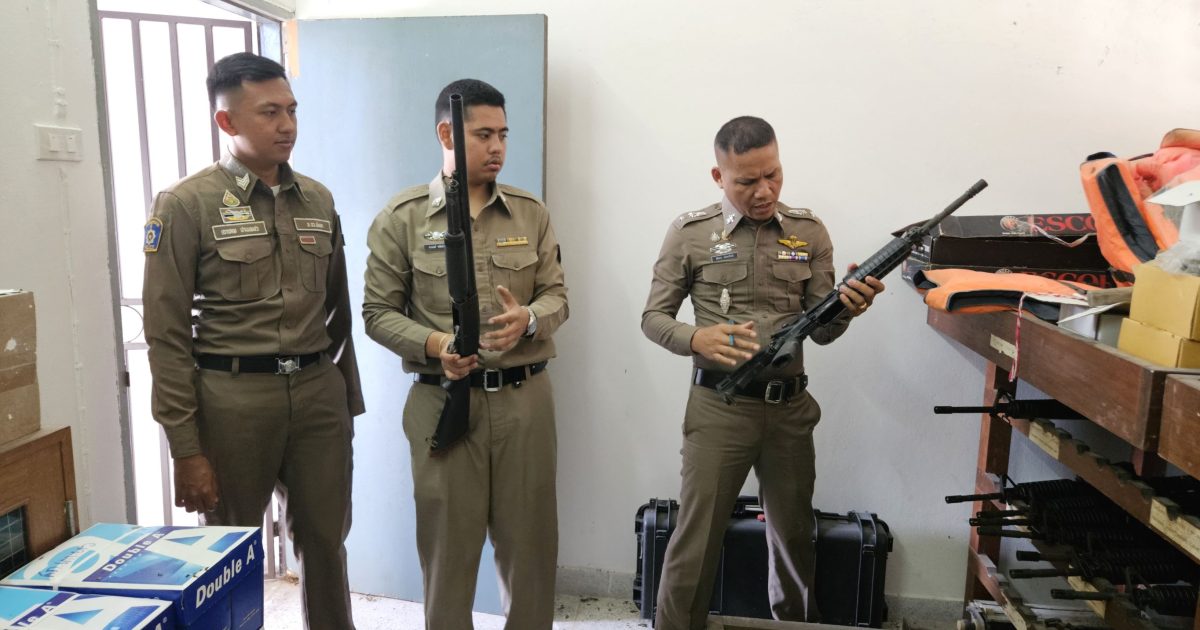 พ.ต.ท.ศักดา อ่อนรักษ์ สว.อก.สภ.เกาะยาว พร้อมเจ้าหน้าที่ที่เกี่ยวข้องตรวจสอบยุทธภัณฑ์ประจำเดือน
