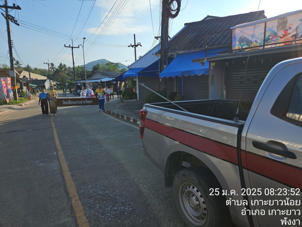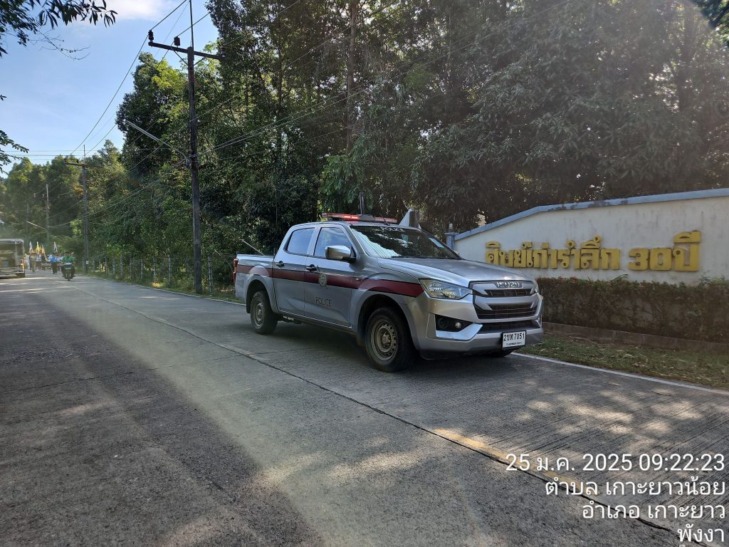 เจ้าหน้าที่จราจร อำนวยความสะดวกจราจรและนำขบวนพาเหรดการแข่งขันกีฬา โรงเรียนเกาะยาววิทยา