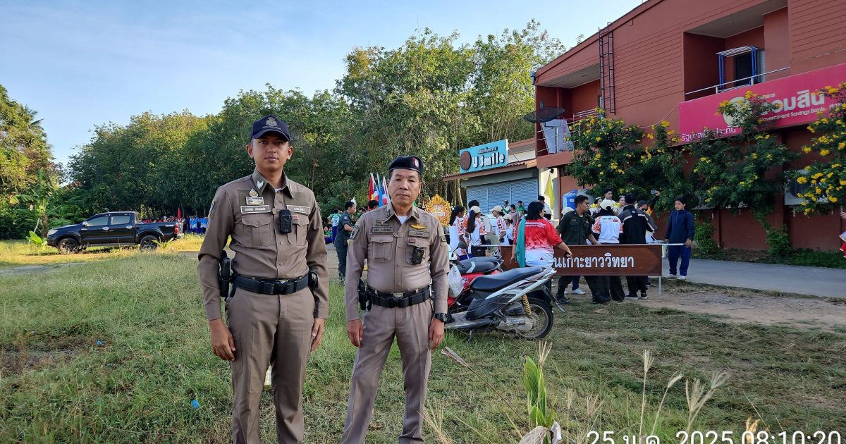 เจ้าหน้าที่จราจร อำนวยความสะดวกจราจรและนำขบวนพาเหรดการแข่งขันกีฬา โรงเรียนเกาะยาววิทยา
