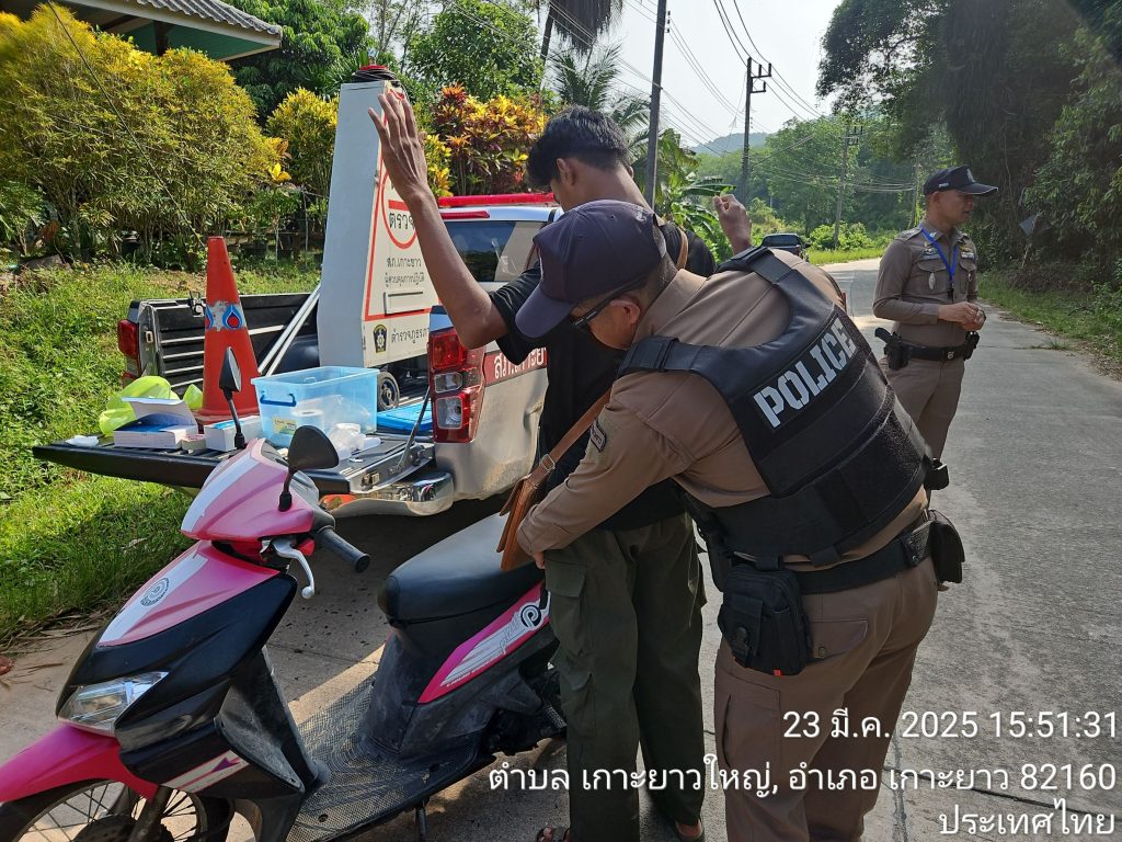 พร้อม ร้อยเวร20-221 และเจ้าหน้าที่สืบสวน สภ.เกาะยาว ว.4 ตั้งจุดตรวจจุดสกัด ในห้วงระดมกวาดล้างอาวุธปืน/หมายจับ เพื่อป้องกันอาชญากรรม ณ รอยต่อบ้านคลองเหีย-บ้านย่าหมี และ สามแยกบ้านโล๊ะจาก เกาะยาวใหญ่ ผลการปฏิบัติ ดังนี้