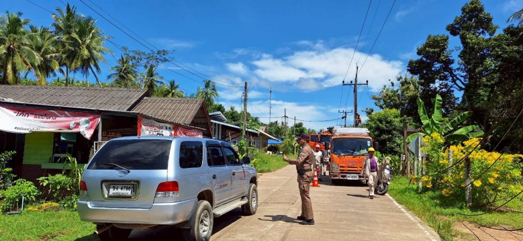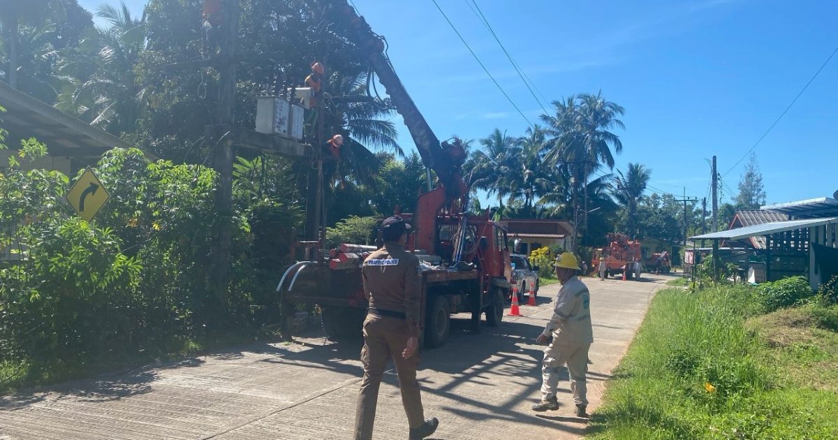 เจ้าหน้าที่ตำรวจจราจร สภ.เกาะยาว อำนวยความสะดวกจราจร เนื่องจากมีการไฟฟ้าซ่อมบำรุงสายไฟ