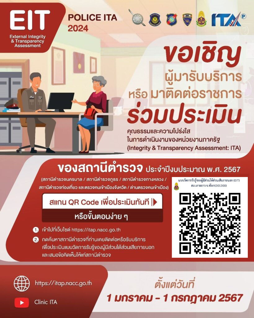 การประเมินคุณธรรมและความโปร่งใสในการดำเนินงานของสถานีตำรวจ ประจำปีงบประมาณ 2567