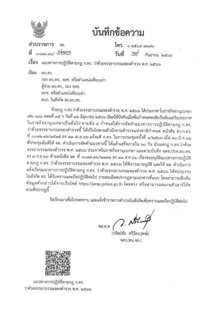 ดาวโหลดแนวทางการปฏิบัติตามกฏ ก.ตรว่าด้วยจรรยาบรรณตำรวจ พ.ศ.2566