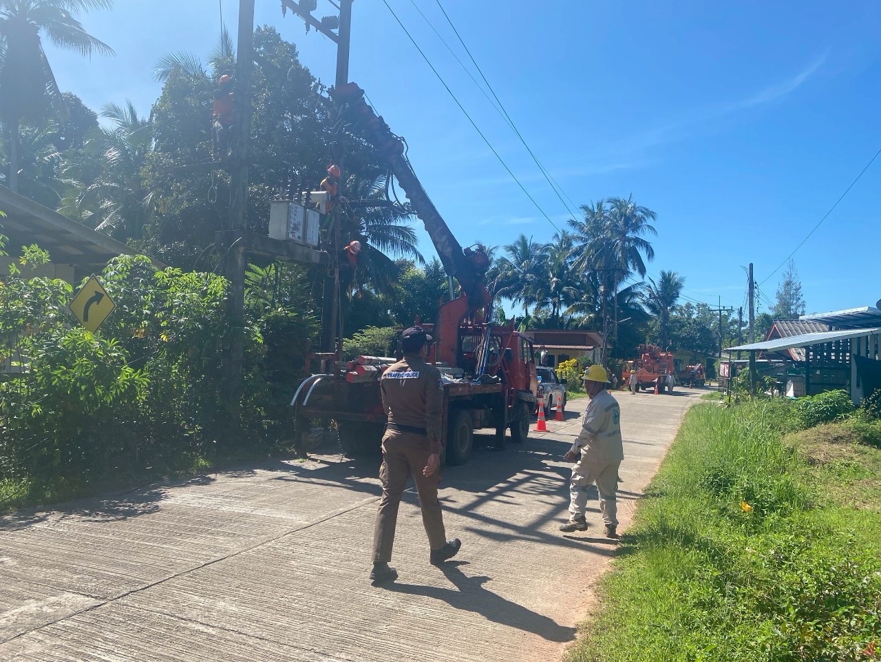 เจ้าหน้าที่ตำรวจจราจร สภ.เกาะยาว อำนวยความสะดวกจราจร เนื่องจากมีการไฟฟ้าซ่อมบำรุงสายไฟ FacebookFaceb