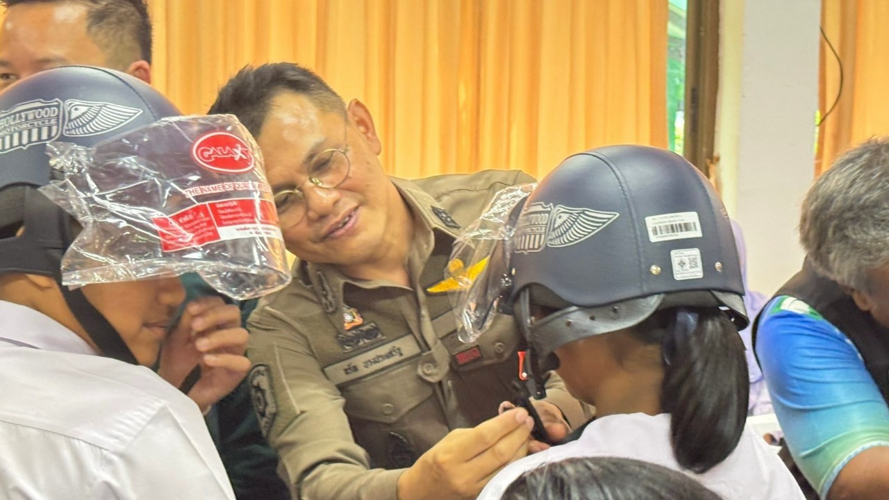ผกก.สภ.เกาะยาว ร่วมโครงการสวมหมวกกันน็อค 100% และมอบหมวกนิรภัยให้แก่นักเรียนโรงเรียนเกาะยาววิทยา