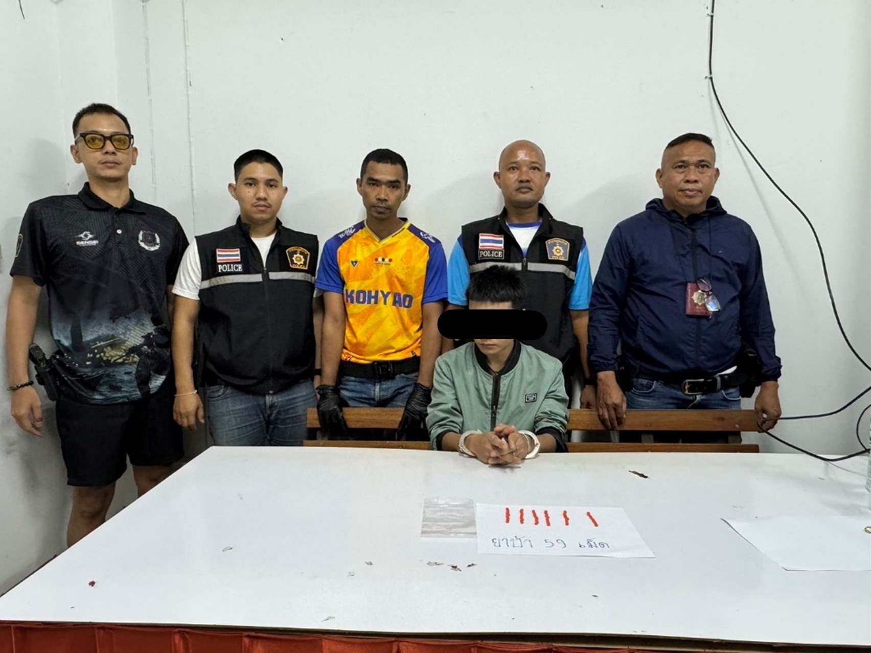 จับกุมยาเสพติดให้โทษประเภท 1 (เมทแอมเฟตามีนหรือยาบ้า) จำนวน 59 เม็ด